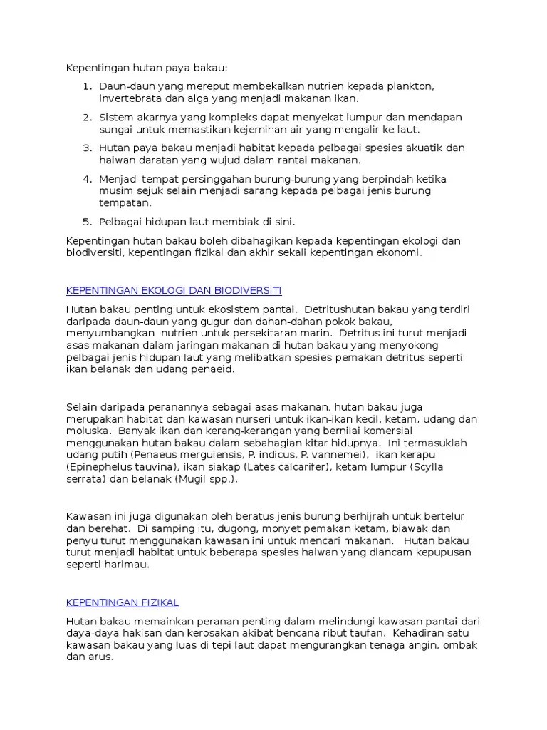 Karangan Kepentingan Hutan Paya Bakau : Kepentingan Hutan Docx Kepentingan Hutan Kepada Alam Sekitar Menghalang Hakisan Liputan Tumbuh Tumbuhan Penting Dalam Melindungi Tanih Daripada Course Hero. Baca versi flipbook dari buku teks bahasa melayu tingkatan 5 kssm. Enter the email address you signed up with and we'll email you a reset link. Pernafasan, kekurangan oksigen kerana ditenggelami air masin, keluar menegak dari … Berbeza mengikut jarak dari laut.